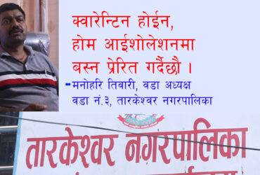 क्वारेन्टिन होईन, होम आईशोलेशनमा बस्न प्रेरित गर्दैछौ- मनोहरि तिवारी, वडा अध्यक्ष ,तारकेश्वर नगरपालिका