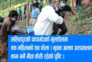 ललितपुर चापागाँउको मुलडोलमा एक महिलाको शव फेला (भिडियो सहित), मृतक अल्का अस्पतालमा कार्यरत कर्मचारी रहेको पुष्टि