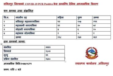 ललितपुरमा थपिए २६१ कोरोना सङ्क्रमित
