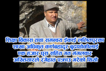 एक हजार घुस सहित पक्राउ परेका शाखा अधिकृत धरौटीमा रिहा